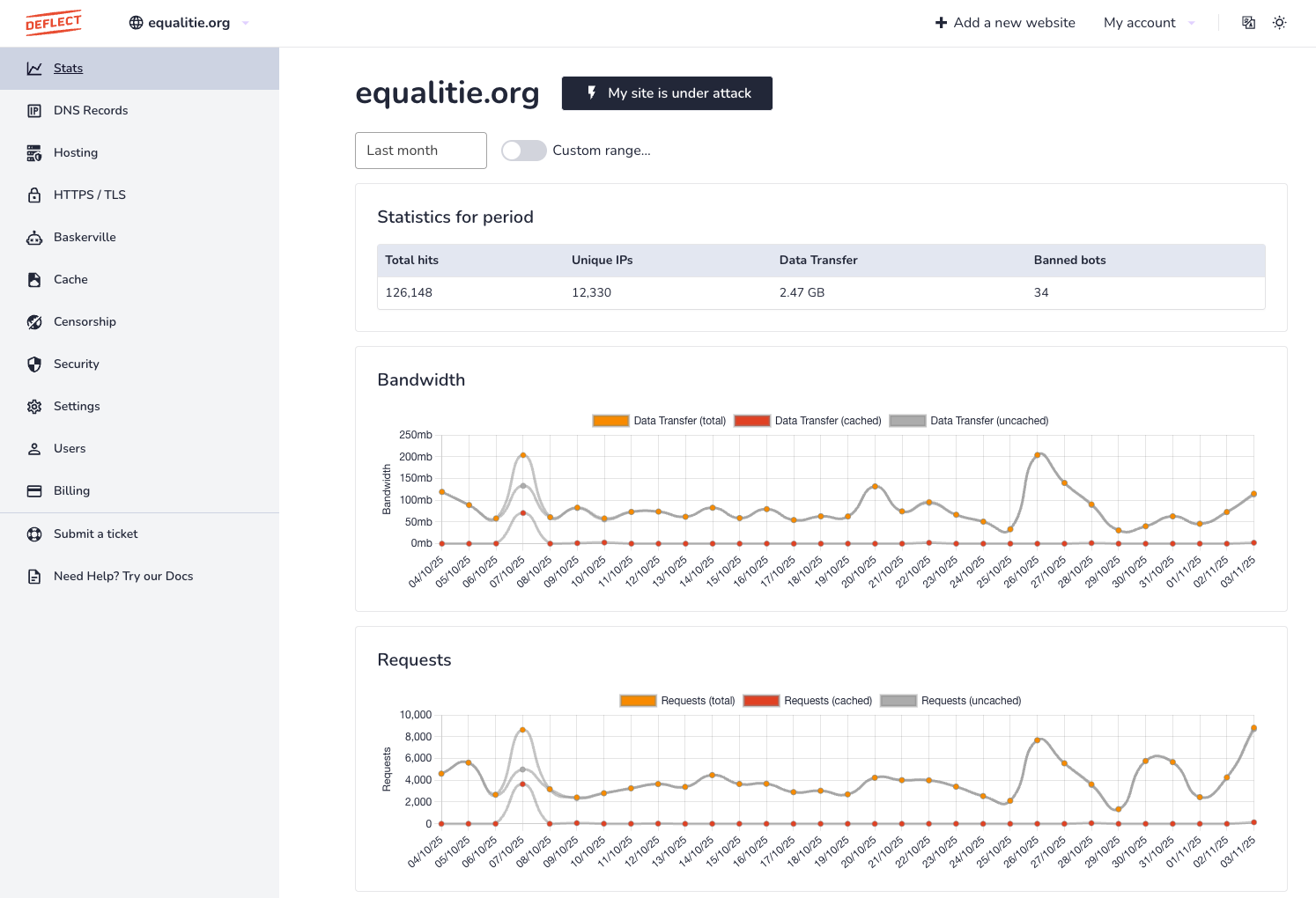 At Deflect, we have always provided our services for free to eligible non-profits and independent media groups, without compromising your data privacy. Our principles, privacy policy, and conditions are transparent. For commercial sites, our pricing is transparent. Unlike most of our competitors, we charge for the number of unique monthly IPs to your site, not for multiple visits from one IP, or traffic from attacks.